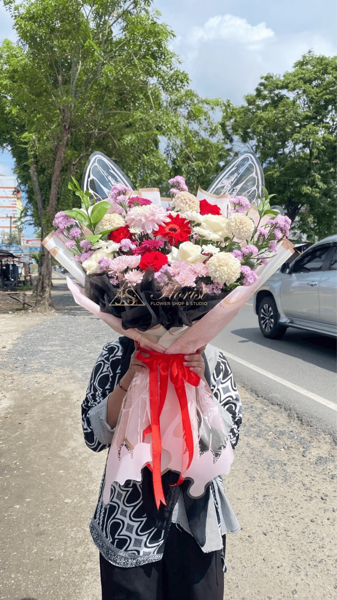 Buket ini nggak cuma berisi bunga aja, tapi juga dihiasi dengan hiasan kupu-kupu yang elegan dan dreamy banget! Cocok buat kamu yang suka vibe yang lembut, estetik, dan beda dari yang lain. 🌸✨ Dirangkai dari bunga pilihan yang fresh dan cantik, ditambah aksen butterfly yang bikin tampilannya makin manis dan unik, cocok banget buat kado ulang tahun, bridesmaid gift, lamaran, sweet seventeen, atau sekadar bilang “aku mikirin kamu” dengan cara yang cantik ✨🦋💐